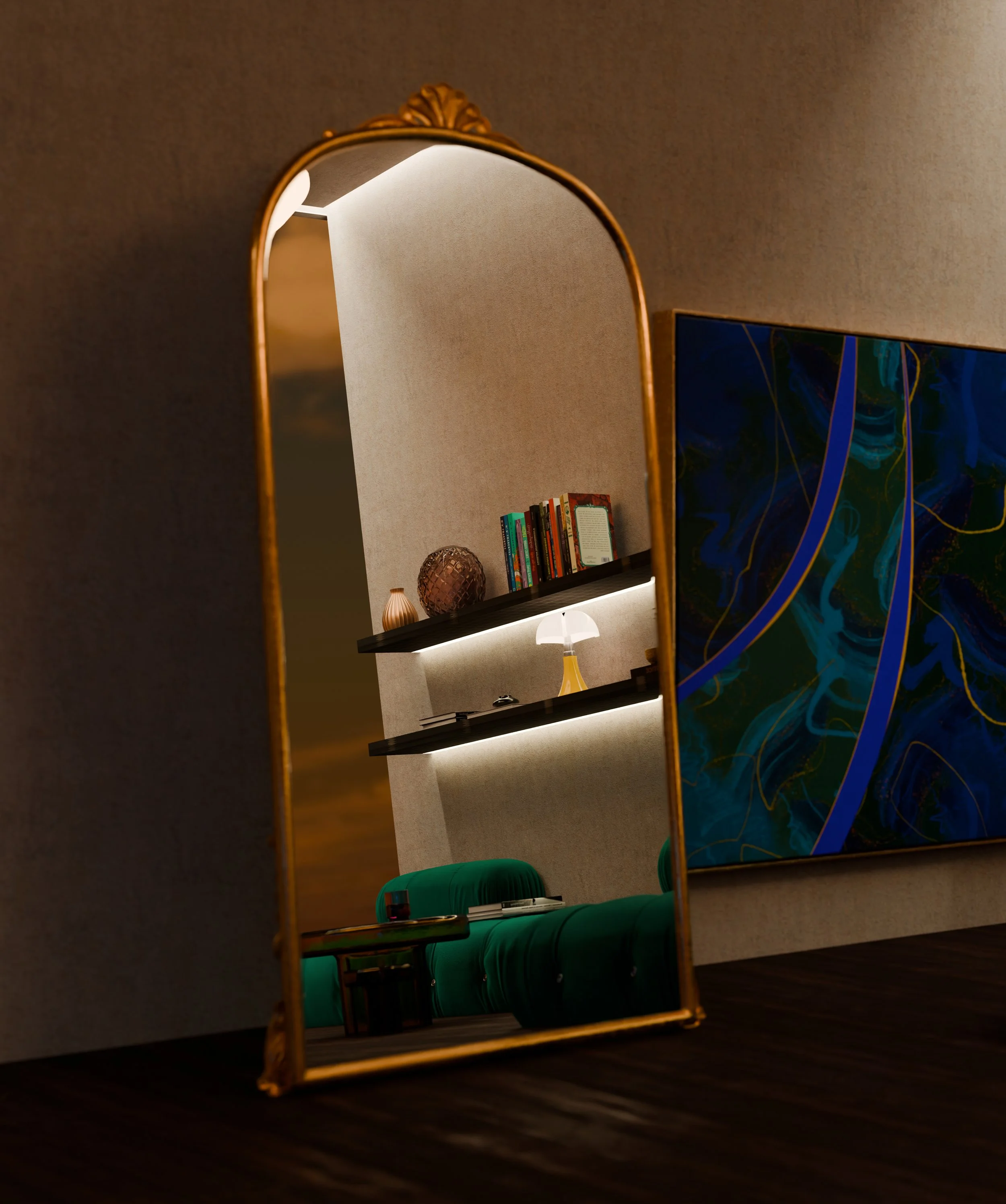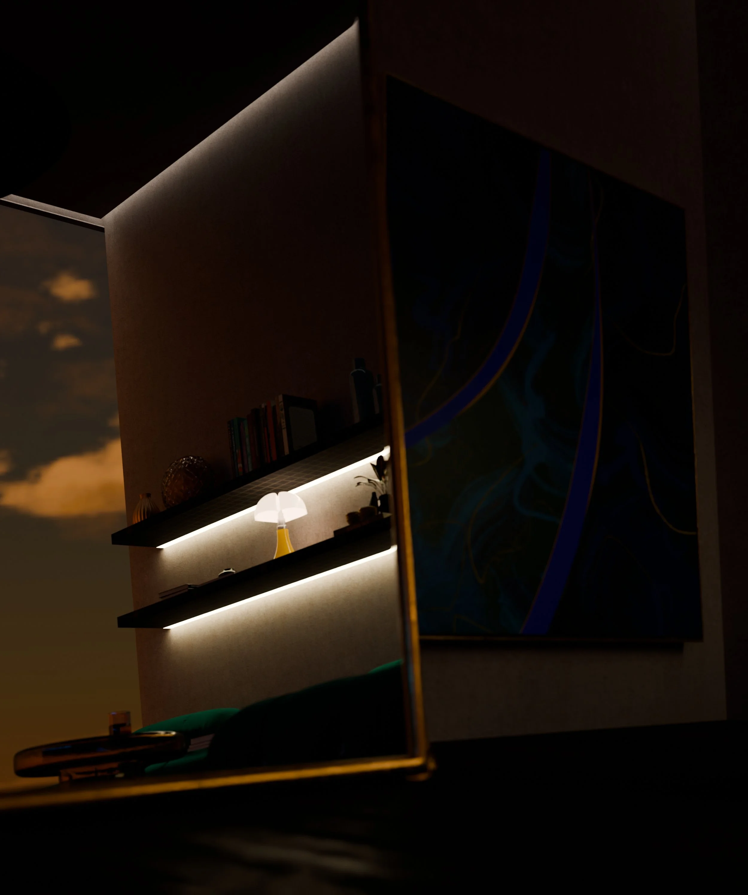 Haven Exploring the ways art and architecture can meet, overlap, and transform a space together. A study in atmosphere, material warmth, and the intimate dialogue between space and art. < Dantean Prism >