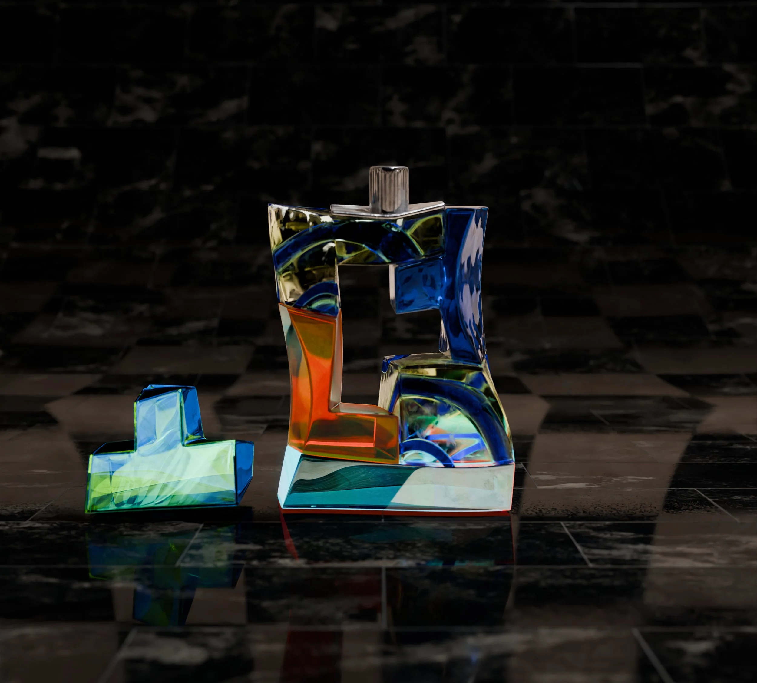 Tessera Exploring how complexity resonates as simplicity through structure and assembly. A study of modular form shaped by color and reflection. < Hades forms >